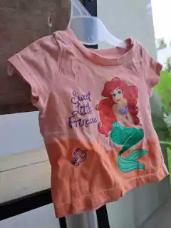 - Inicio / Ropa Bebe / Recien nacido / 0/3M | Remera MC salmón "La Sirenita" glitter- DISNEY - Talle 0a3 meses