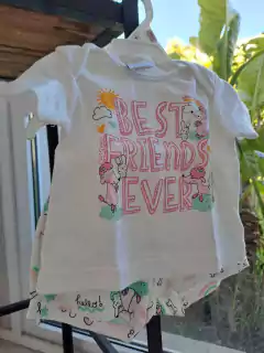- Inicio / Ropa Bebe / Recien nacido / 1/3M |Set remera de algodón blanca c letras rosas + short blanco c conejos - GRISINO - Talle 1-3 meses