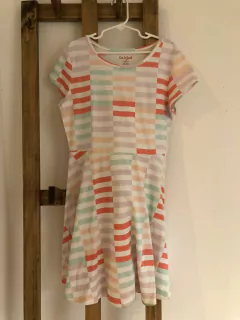 10/12A | Outlet- Vestido MC de algodón fondo blanco y rayas naranjas y lilas. CAT AND JACK. 10/12 años.