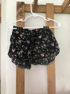 12M | Short finito negro con flores y elástico. URB. 12 meses.
