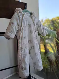 Enterito algodon y polar, blanco c ositos, cierres diagonales, capucha c corderito-H&M-Talle:2-4 meses