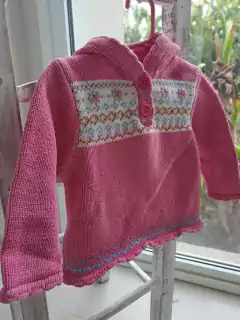 OUTLET - Sweater rosa hilo grueso c guarda de flores y capucha - OSHKOSH -Talle 2 años