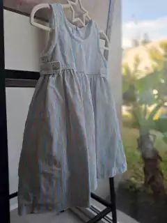 Vestido SM corderoy a rayas celeste y beige - Talle 2 años