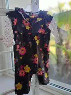 Enterito algodón a la rodilla ML , marrón c flores fucsia y mangas lunares-CARTERS-Talle 3 meses