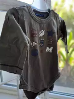 Body ML verde seco c estampa en bordó y azul - MIMO - Talle M (6 a 9) es chico