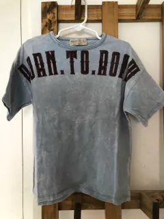6A | Remera celeste MC con inscripción. ZARA. 6 años.