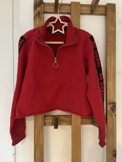 8/9A | Buzo rojo y negro con cierre en cuello. COMO QUIERES. Talle 36 de la marca es aprox. 8/9 años.