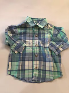 9M | Camisa ML a cuadros verde agua. CARTERS. 9 meses.