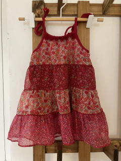 9M | Vestido floreado rojo y naranja con tiritas. CHEEKY por Dolores Barreiro. 9/12 meses.