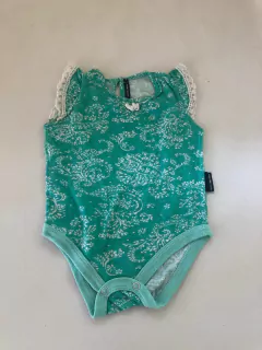Body verde agua con flores blancas. MIMO. 6 meses.