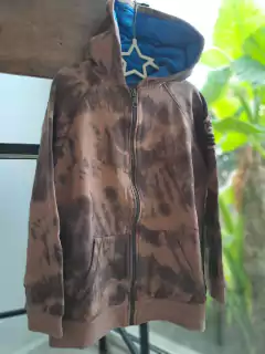 Buzo camuflado en marrones, interior capucha turquesa y letras atras-LITTLE AKIABARA -Talle 8 años