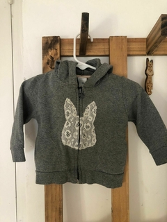 Buzo gris con capucha y conejo blanco. CHEEKY. 6/9 meses,.
