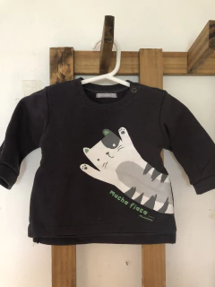 Buzo negro abrigado con gatito. MIMO. 6 meses.