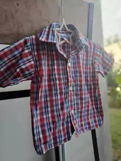 12M | Camisa MC finita cuadrillé rojo y azul. 12 meses.