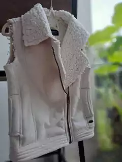 Chaleco de gamuza beige clarito c corderito blanco - MIMO - Talle 6 años