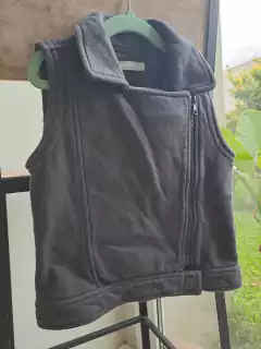 6A | Outlet- Chaleco gris con tachas en la solapa y cierre diagonal, algodón grueso - MIMO - Talle 6 años