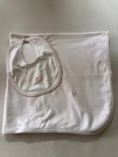 - Inicio / Prendas / Accesorios / Manta recibidora y babero con detalle rosa. ME.