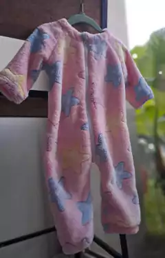 Pijama polar rosa c estrellas celestes, cierre de adelante hasta atrás- SHEIN -
