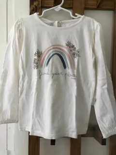 Remera blanca con arcoiris. ANAVANA. Talle 10 años.