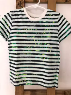 Remera MC a rayas con hojas verdes. CHEEKY. 3 años.