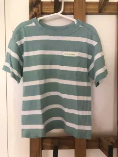 Remera MC celeste y blanca a rayas. HYM. 5/6 años.