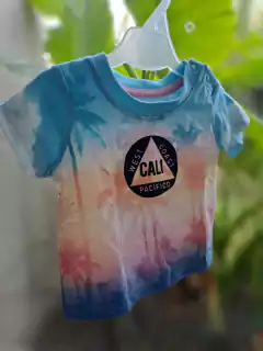 Remera MC en degrade celeste, rosa, naranja, c palmeras - EARLY DAYS - Talle 3a6 meses