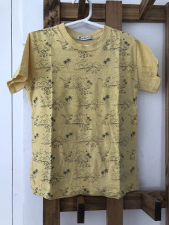 - Inicio / Niños / 6 y 7 años / Remera MC mostaza con dinos. Weak Meak. Talle 6 años.