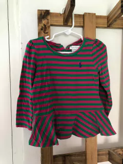 Remera ML a rayas roja y verde. POLO. 24 meses.