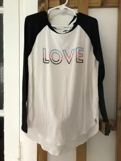 Remera ML blanca y negra Love. OLD NAVY. 8 años.