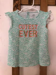 Remera sin mangas verde agua con letras doradas. CARTERS. 18 meses.