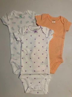 - Inicio / Ropa Bebe / Recien nacido / RN | SET- Tres bodys MC blanco con bicis, salmón con lunares y blanco con lunares lilas CARTERS. Recién Nacido. Como nuevos.