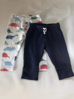 Set- Dos pantalones de algodón blanco con dinos y azul. CHEEKY y CARTERS. 6 meses.
