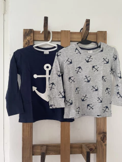 Set- Dos remeras ML azul y gris anclas. CARTERS. 12/18 meses.
