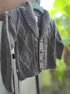 Sweater gris jaspeado, escote en V c cuello y botones de madera - Talle 6 meses
