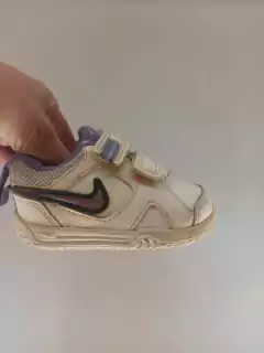 T18 | Zapatillas con abrojo blancas y lilas. NIKE. Talle 18.