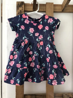 Vestido de algodón azul con flores y body abajo. CARTERS. 9 meses.