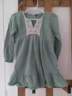 Vestido de algodón ML verde con aplique en el cuello. Chibel. 24 meses,