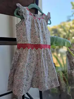 Vestido SM blanco c florcitas en rojo y verde , cintura y cuello bordados - EPK - Talle 4 años