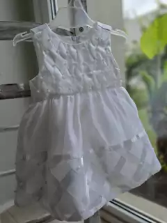- Inicio / Ropa Bebe / Recien nacido / 0/3M | Vestido SM blanco forrado en tul en capas, aplique de perlas - AMERICAN PRINCESS - 0 a 3 meses.
