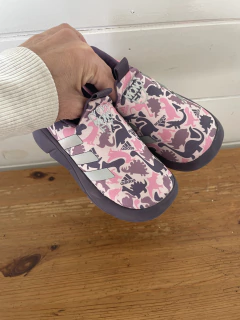 Zapatillas lilas con dino sin cordón. ADIDAS. 23 y medio.